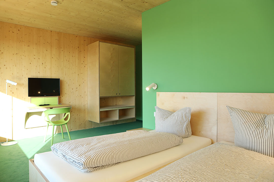 Unser Haus verfügt über 4 Wohnungen und 14 Appartements auf zwei Etagen (Aufzug vorhanden), alle sind mit zwei Betten und Nasszelle ausgestattet. In zwei Appartements befindet sich zusätzlich je ein Stockbett für Kinder. Zwei Appartements sind behindertengerecht eingerichtet. Bettwäsche wird kostenlos zur Verfügung gestellt, wir bitten lediglich, Handtücher für den eigenen Gebrauch mitzubringen. Gemeinschaftlich zu nutzende Räume wie Küche, Aufenthaltsraum, Ruheraum und Terrasse befinden sich im Untergeschoss des Hauses. Alle Appartements verfügen über einen Fernseher. W-LAN steht im ganzen Haus kostenlos zur Verfügung. Waschmaschine sowie Trockner stehen ebenso zur Verfügung wie ein Getränkeautomat. Ausführliche Informationen finden Sie in unserem aktuellen Flyer.